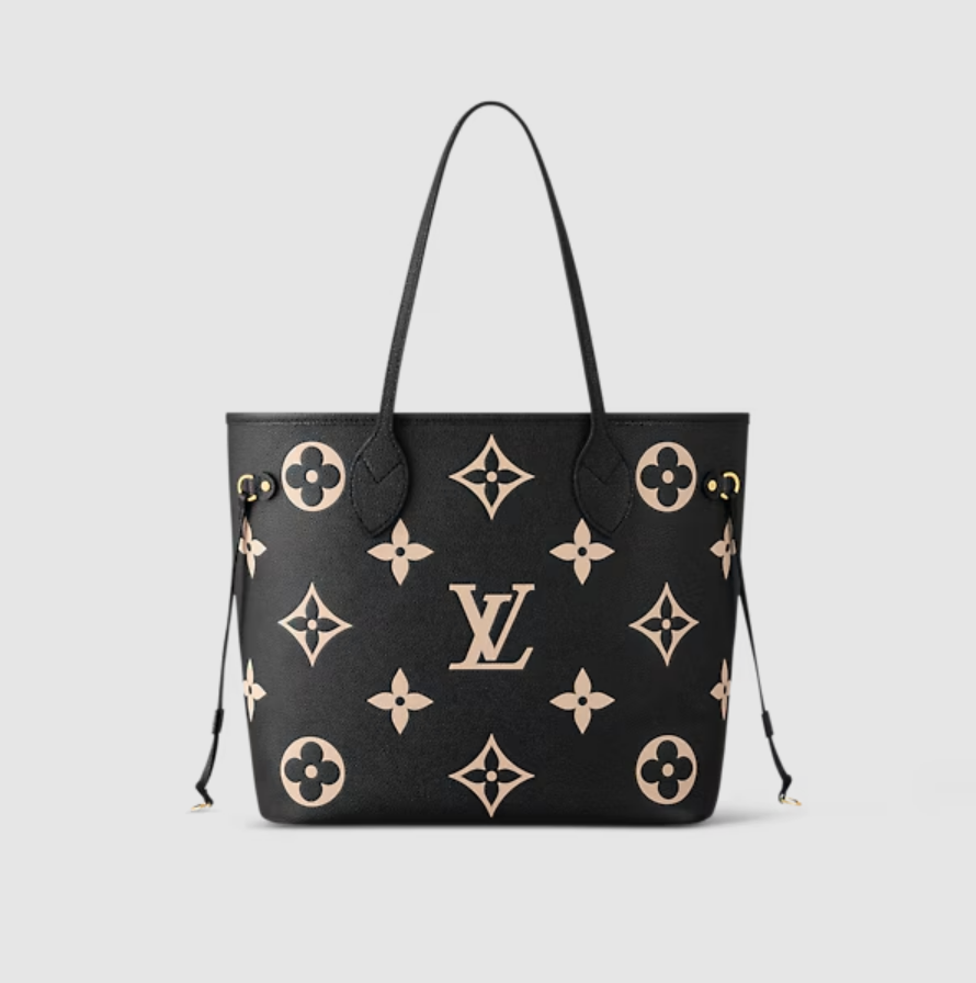 The Neverfull medium bag is embossed and then printed to depict Monogram patterns on cow leather. Tighten the side strap, Tote bag instantly become an elegant urban handbag; Long handle for shoulder, back or elbow.