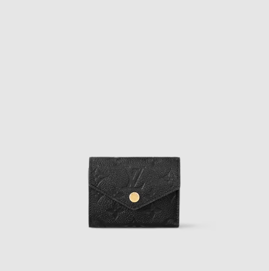 Zoe short money clip cut from soft Monogram Empreinte grain leather with classic Louis Vuitton Monogram embossed. Easy to fit into a small bag or clutch, but big enough to store coins, notes and credit cards, it’s a compact mini accessory.